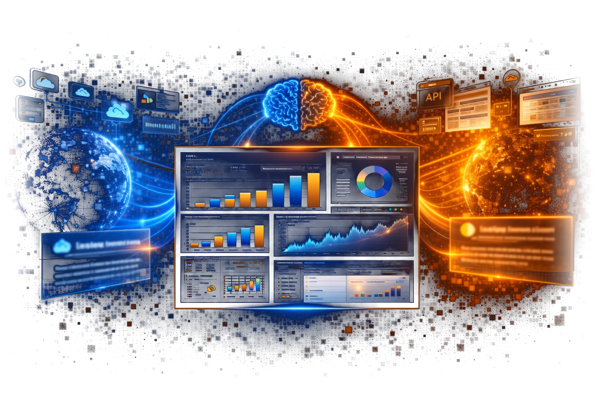 • Data Fusion: It uses robust APIs and advanced web scraping capabilities to combine your internal KPIs with external data sources, creating a real-time enriched information flow.